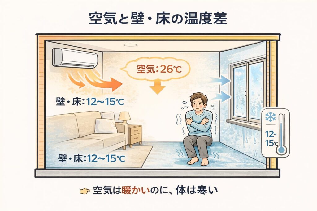 - 壁や床が冷たいまま